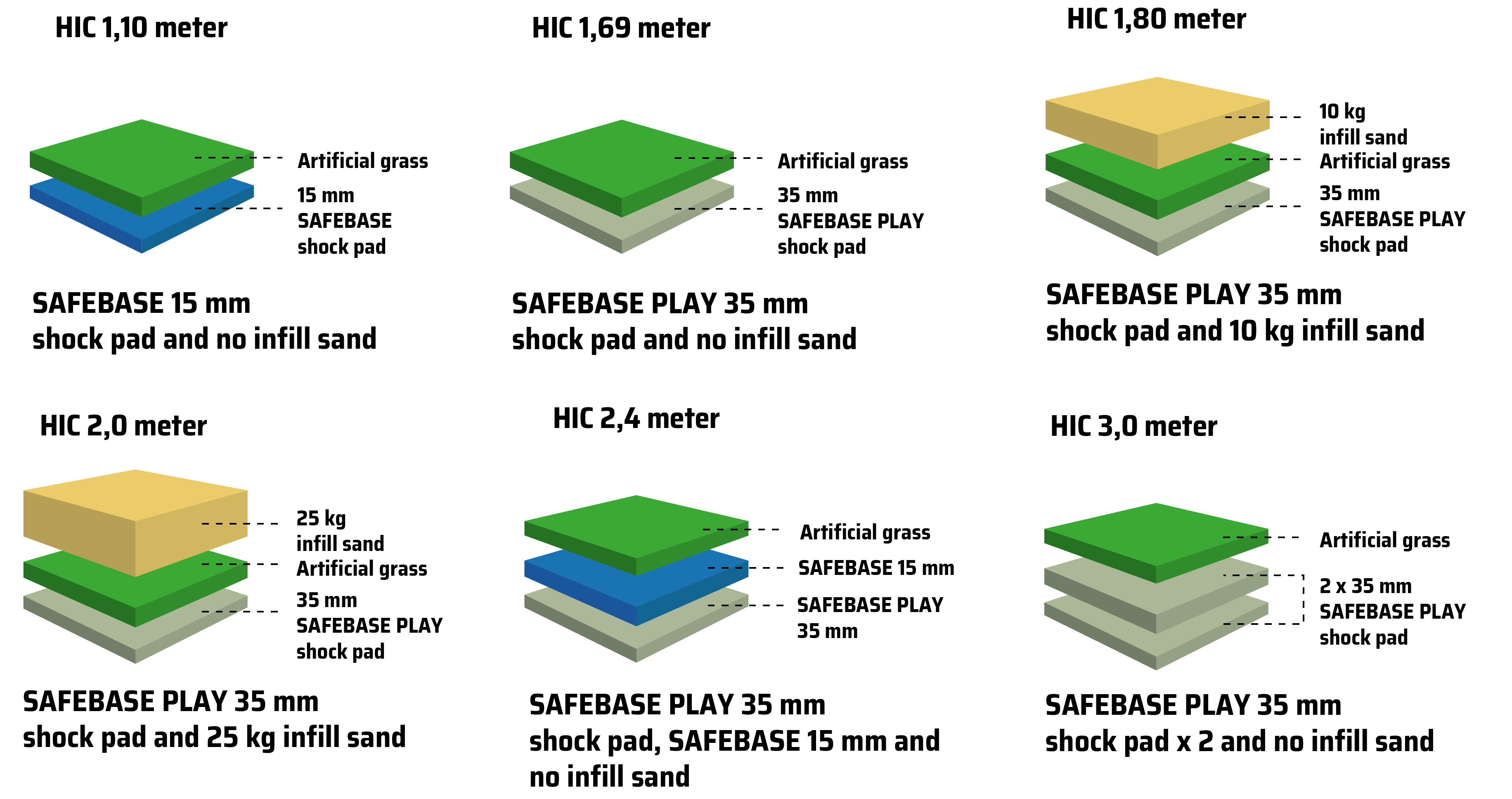 Add the SAFEBASE 15 mm Shock pad -> Approved for a HIC of 2,4 meters
